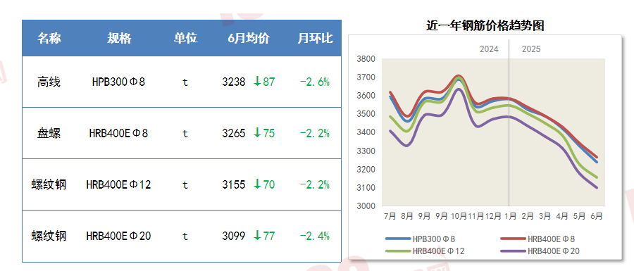 城市更新和建材消费品“以旧换新”等政策效应对建材市场的根本支持感化愈加,5-6月,钢筋价钱延续下跌趋向。