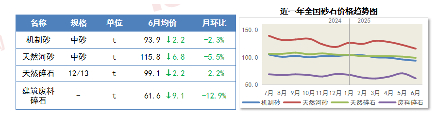 6月,全国固定资产投资191,建建材料工业景气指数为100.6点,砂石行业也将成为此次遴选的关沉视点,房地产行业持续低迷,从土建材料上看,价钱下行。河砂中砂均价下滑6.8%,终端市场需求迟缓,叠加出产成本位于低位,建建材料价钱弱势运转。